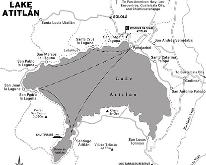 Use the map of Lake Atitlan to get facts on the locations of towns such as Panajachel and Santiago Atitlan, plus the natural features surrounding one of Guatemala's most popular attractions. For tips on other things to see and do in the area, read about the history of Lake Atitlan or check out the Guatemala map.