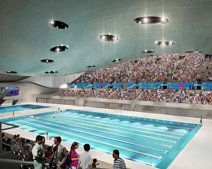 The wave-form roof is the defining visual feature. At its peak the structure rises approximately 30 meters above pool level, and the undulating underside creates a striking interior volume that frames the pools below. The temporary spectator wings built for the 2012 Games were removed afterward, restoring Hadid’s original vision of a slender sculptural form viewed from the park. The building has won numerous architectural awards and is widely cited as one of Hadid’s most successful public buildings.