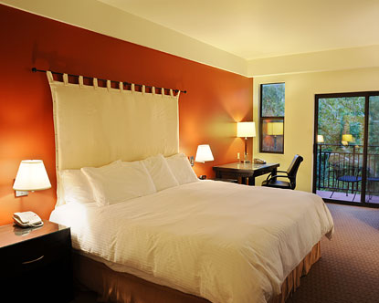 A healthy amount of rooms at the upscale Amara Resort & Spa feature either a private balcony or a private patio. Prospective guests should also know that there are a few different room categories. In addition to the more standard Signature Rooms, there are Creekside Kings and Creekside Suites. Delightful views of Oak Creek, oversized tubs, and separate granite showers are among the main perks in the more exclusive Creekside units.