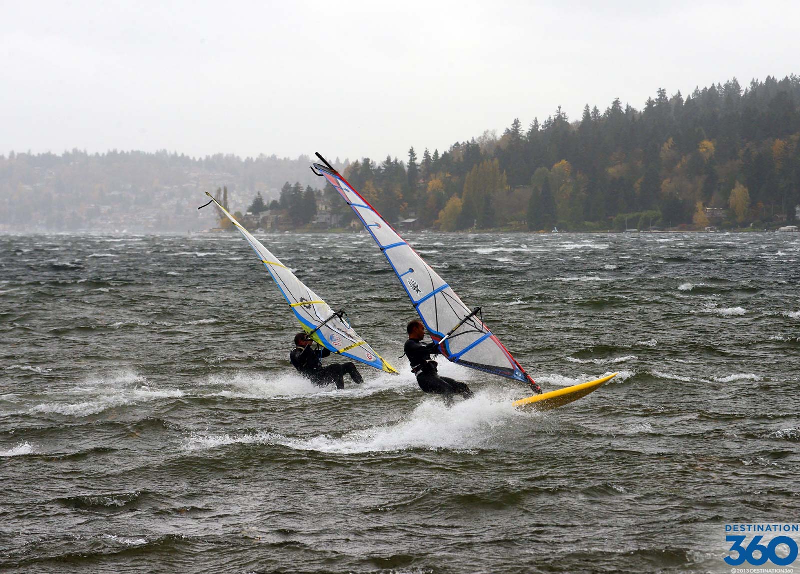 The spring and fall typically offer the best sailing days if you are looking for big wind conditions. During these seasons, it’s not uncommon to get winds between 15 and 25 miles per hour. Usually the winds are not sustained, coming in gusts instead. Spring and fall storms tend to bring the strongest winds, so be on the lookout for them. As for the other two seasons, summer brings plenty of beautiful warm days where the winds are typically 5-15 mph, while winter is when some of the best southerly winds move in. Since the Seattle windsurfing conditions can vary according to day and season, surfers are encouraged to always bring their big sails. Even on lazy summer days, it is typical for Seattle windsurfers to bring their 8.0-10.0 sails. On those pineapple express days when a storm front rolls in you could bring out the 5.0.